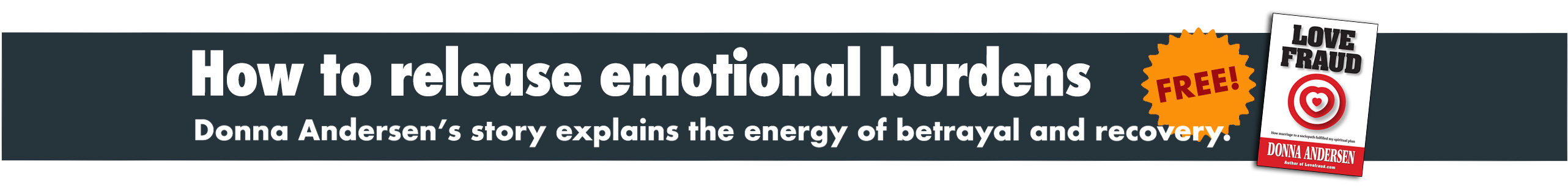 True recovery from betrayal by the sociopath (narcissist, psychopath) is possible. First, I explain who you’re dealing with, and why whatever happened is not your fault. Second, I offer advice on practical issues, like getting away from the perpetrator. Finally, I facilitate letting go of your anxiety, tension and pain through my deep emotional release techniques — guided mindfulness, EFT tapping and reiki. I help you put down the emotional burden, feel better and move forward.